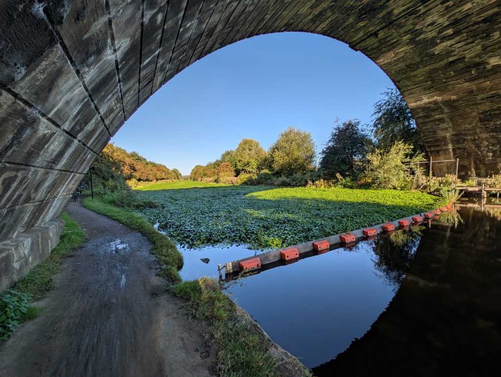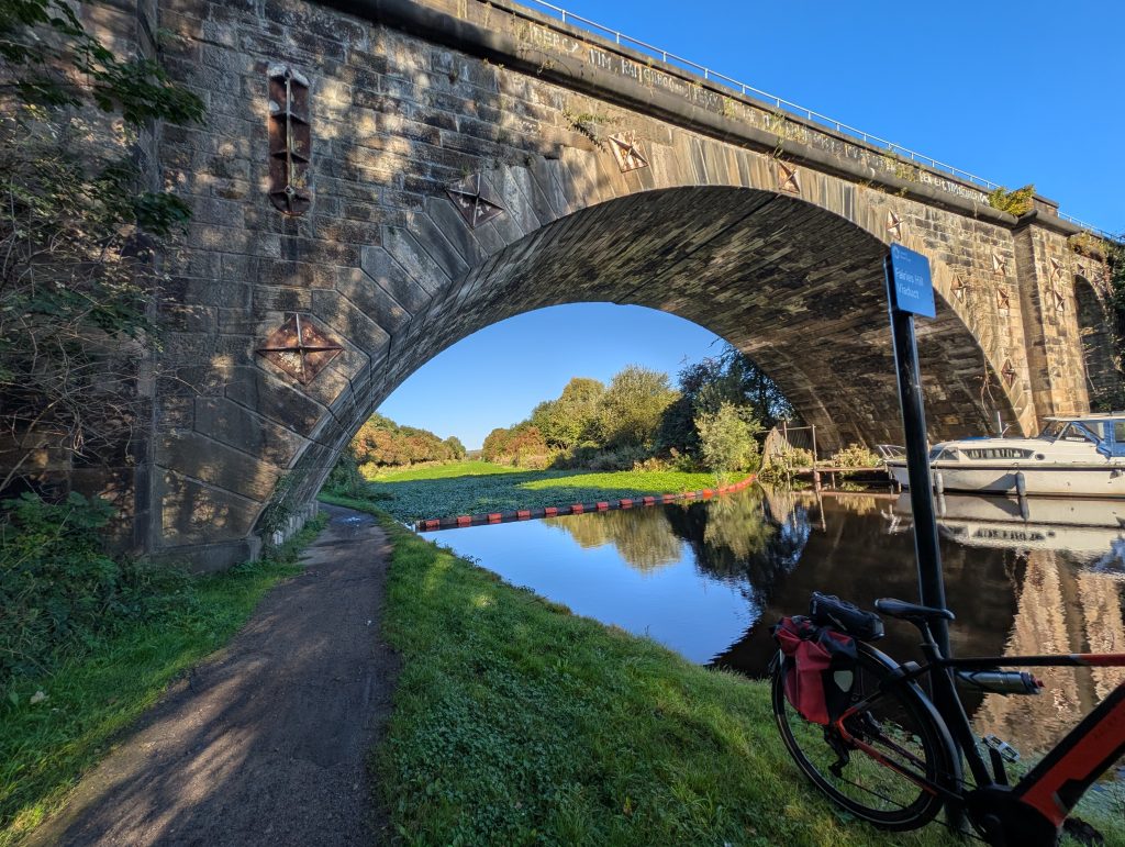 Our route, however, takes you straight up Monk St to turn right on Brunswick St (there are TPT direction signs) Turn right on Park Lodge Lane – it’s the most climbing you will do all day – until you drop down to Neil Fox Way, a new road with a cycle track alongside. L. and take the link to the TPT. The main TPT route is on the West side of the Aire & Calder navigation but take the East side for the Castleford Greenway. Follow this until you pass under a railway viaduct…